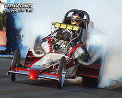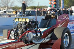 The Nitro Fever nostalgia top-fuel dragster, based in Sacramento, brings together a team with a lot of racing experience. Michael Irwin does the driving for this Dave Smith owned, Bob Santolini tuned dragster.