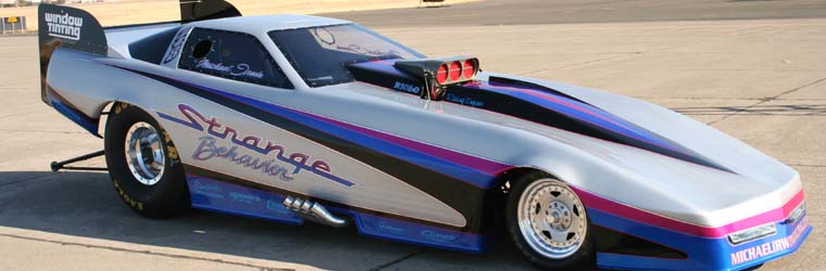 Mike and Kelly's Strange Behavior blown alcohol funny car is hand crafted by the best in the industry. A show-quality car with enough performance to compete wherever it travels, it looks good in the lanes, it looks good in a burnout, and it looks best when crossing the lights first.