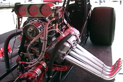 2-speed Precision Transmission Strange live axel rear end TCS Converter Centerline wheels Goodyear Tires Lamb brakes Taylor Motor Sports seatbelts Simpson chutes |